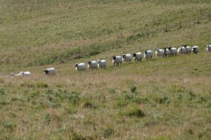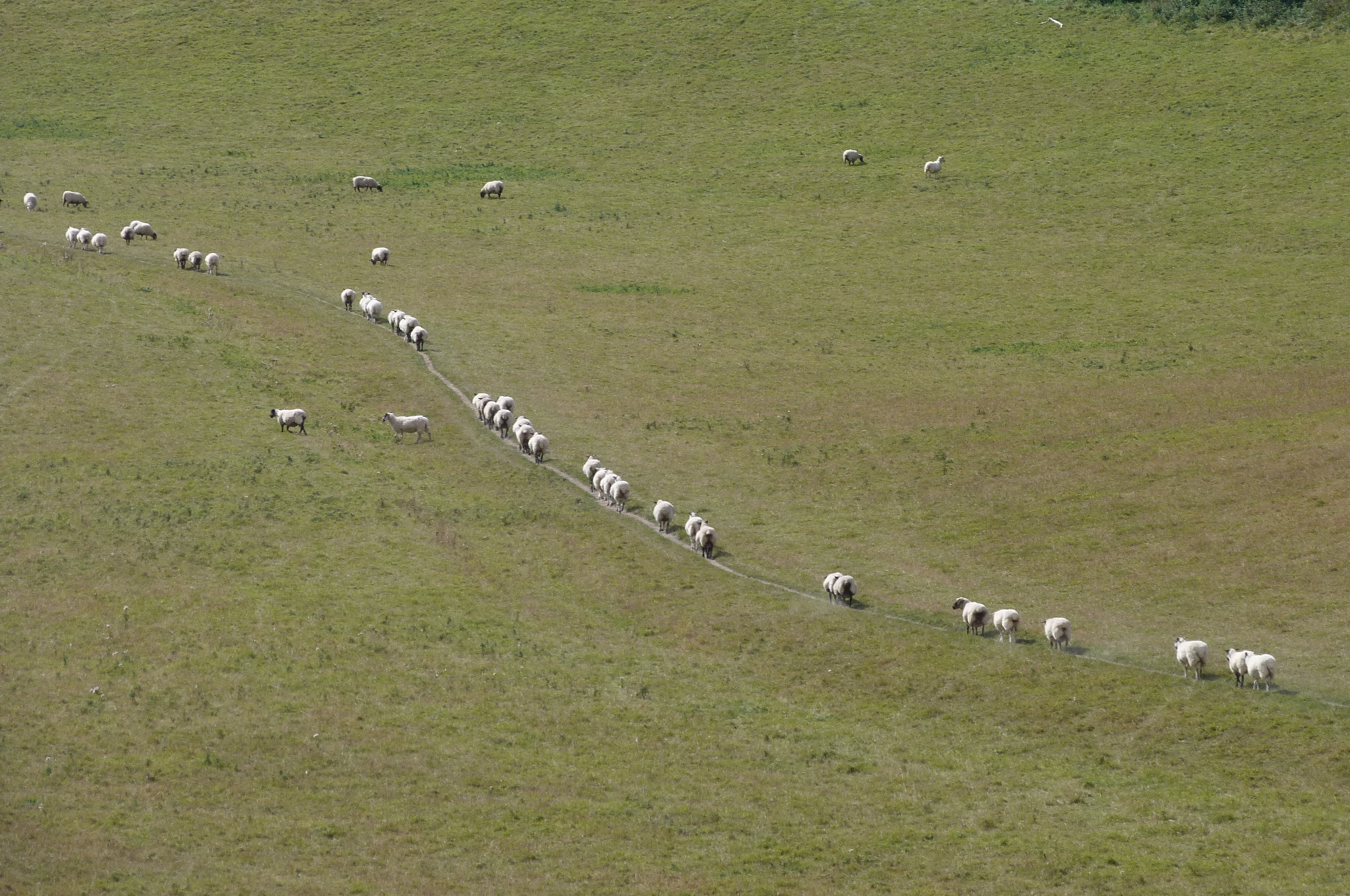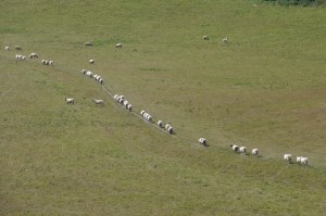It was turning in to another fine day – walking up on the Downs really not a bad way to spend a Wednesday once the bus had deposited us at the bottom of the path just below Upper Beeding. Once again there were fine views back the way we came and we could see Chanctonbury Ring for ages. Just beyond Truleigh Hill which I’ve just discovered hosts a nuclear bunker, we were entertained to see sheep forming an orderly queue – though for what reason we couldn’t say.