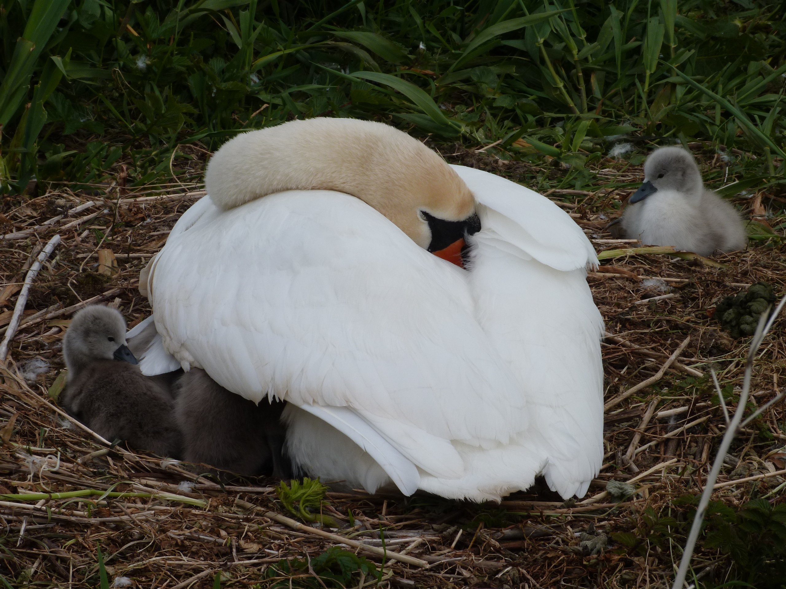 were 4 fluffy cygnets and their proud and very chilled out mute swan parents.